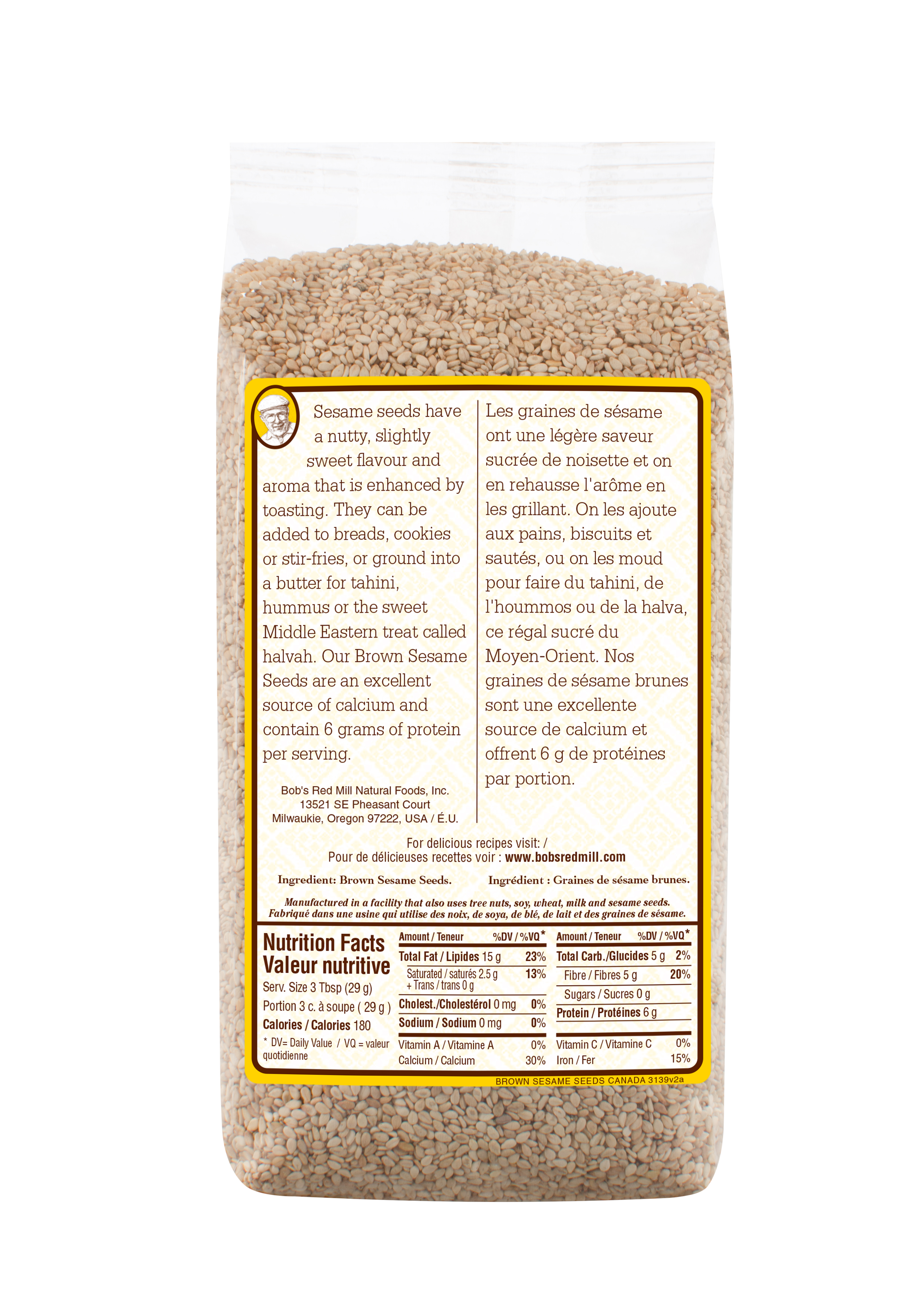 Brown sesame seeds - canadian - 453g - back