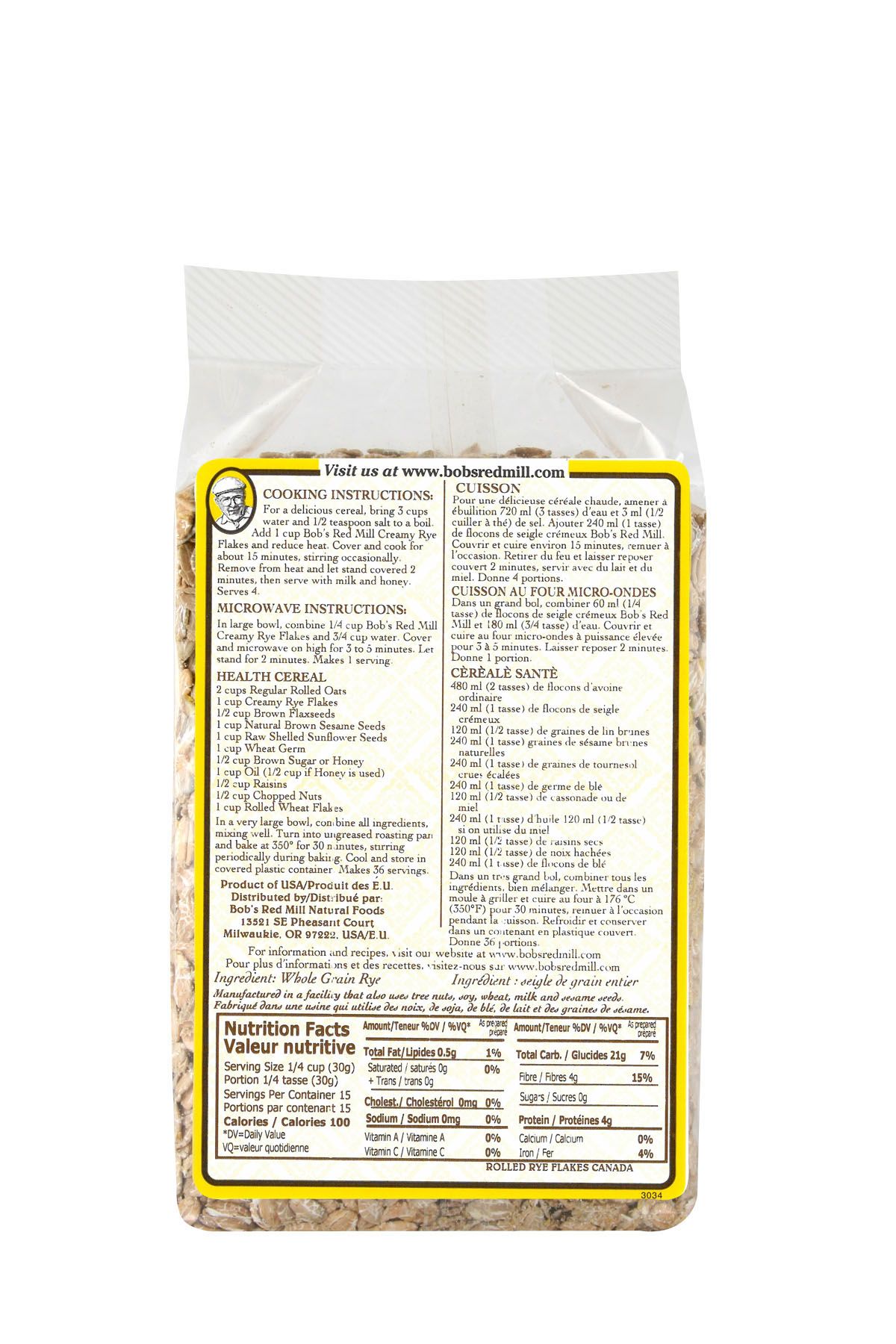 Creamy rye flake cereal - 453g - canadian - back