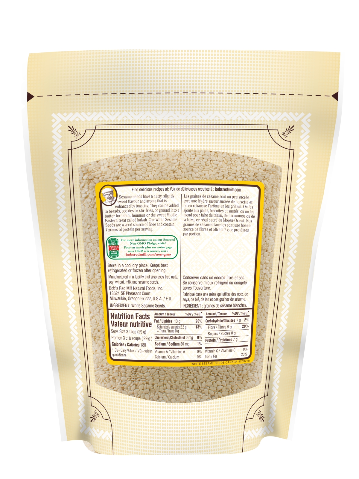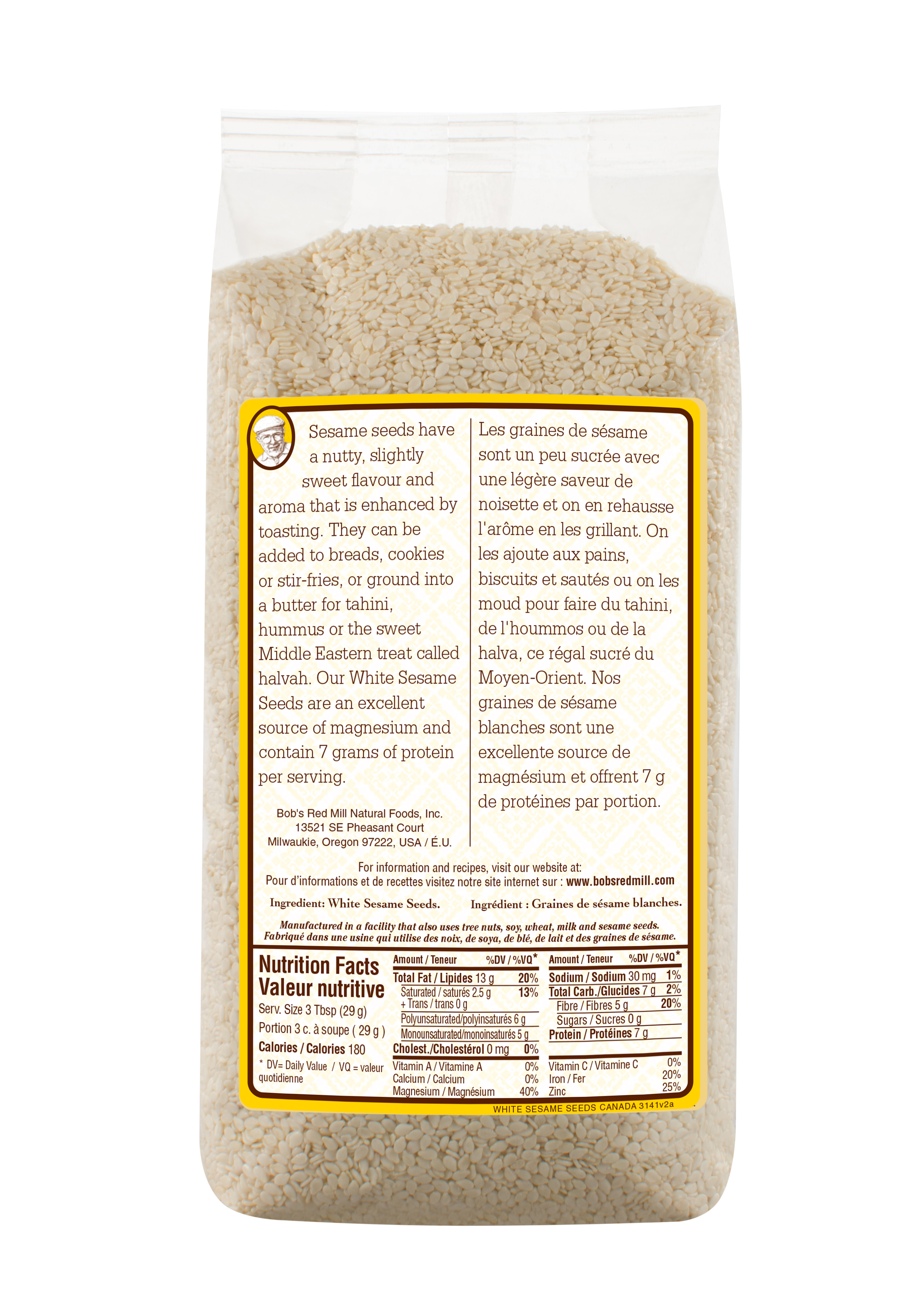 White Sesame Seeds - 283g - back - SUP - canadian
