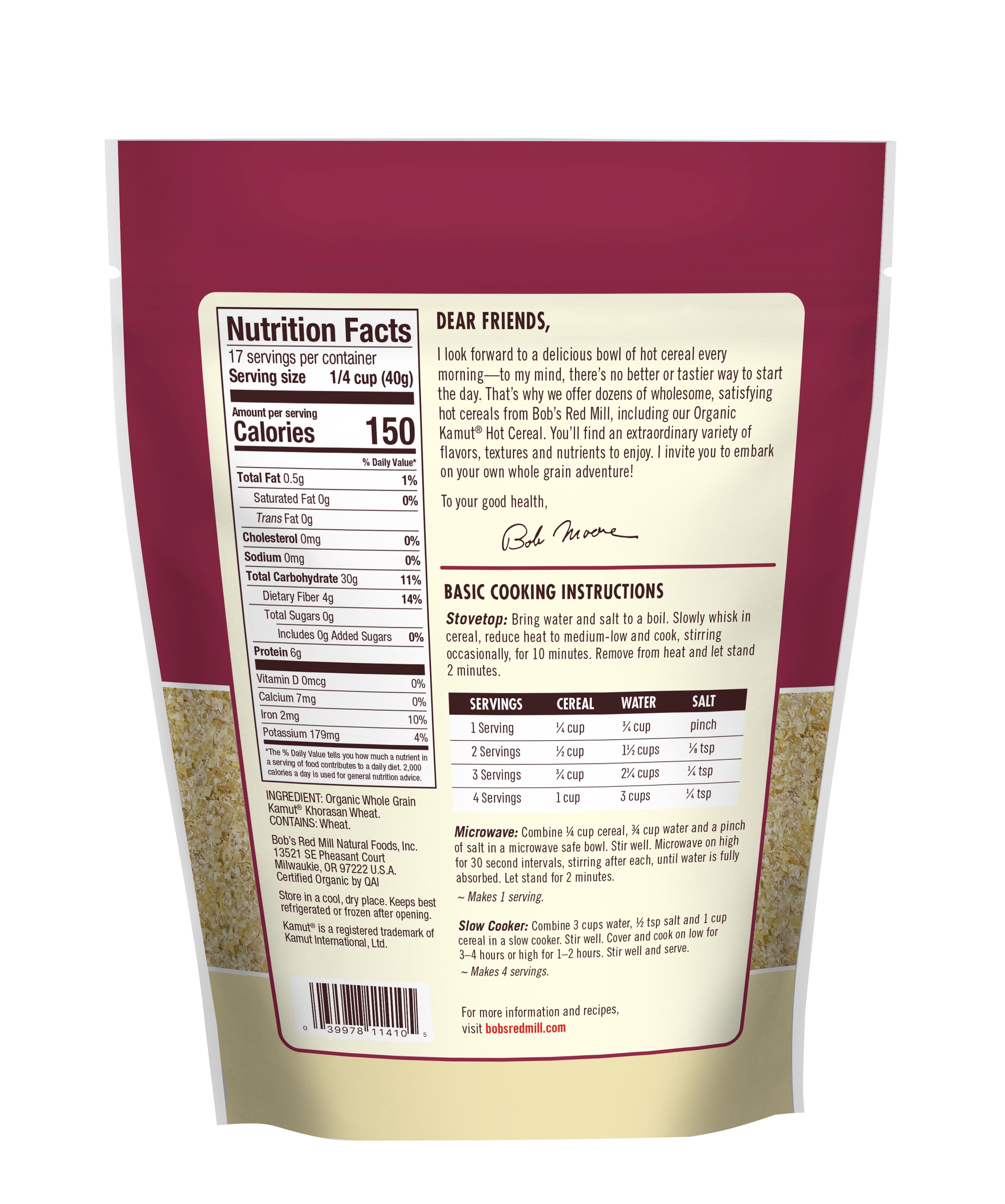 Organic Kamut Hot Cereal - back