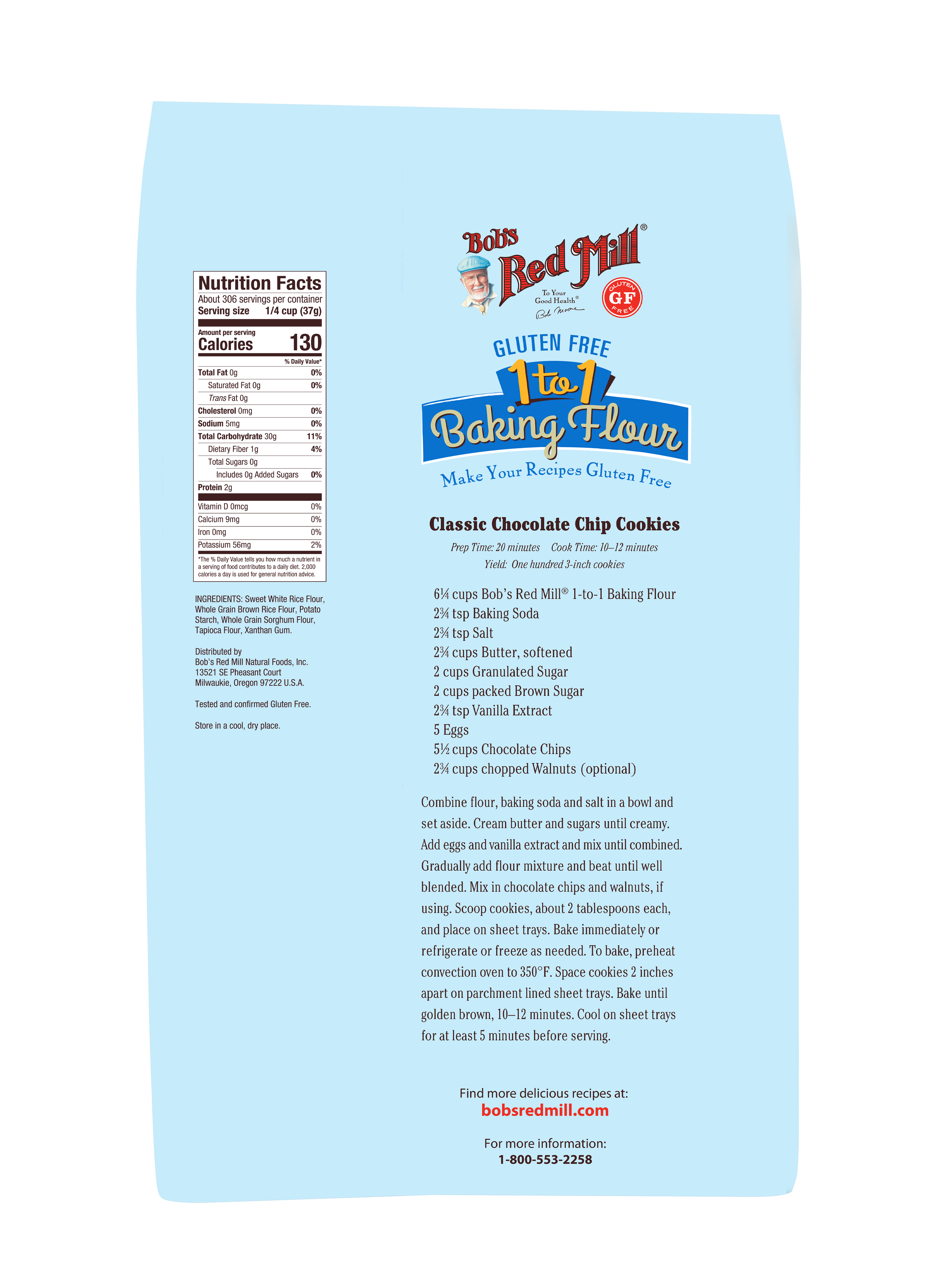 GF 1-to-1 Baking Flour - 25 lbs - Back