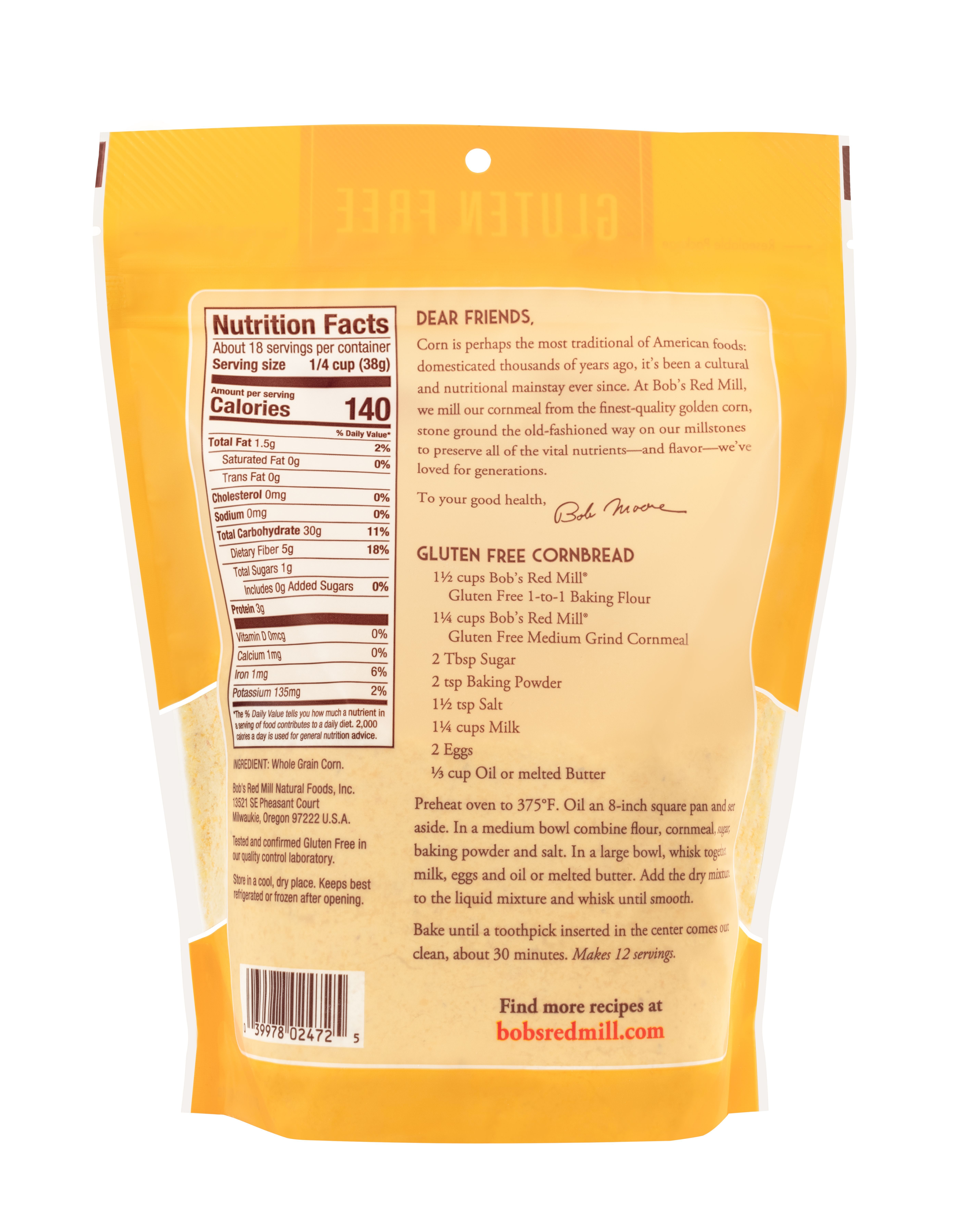Cornmeal Medium Gluten Free- back