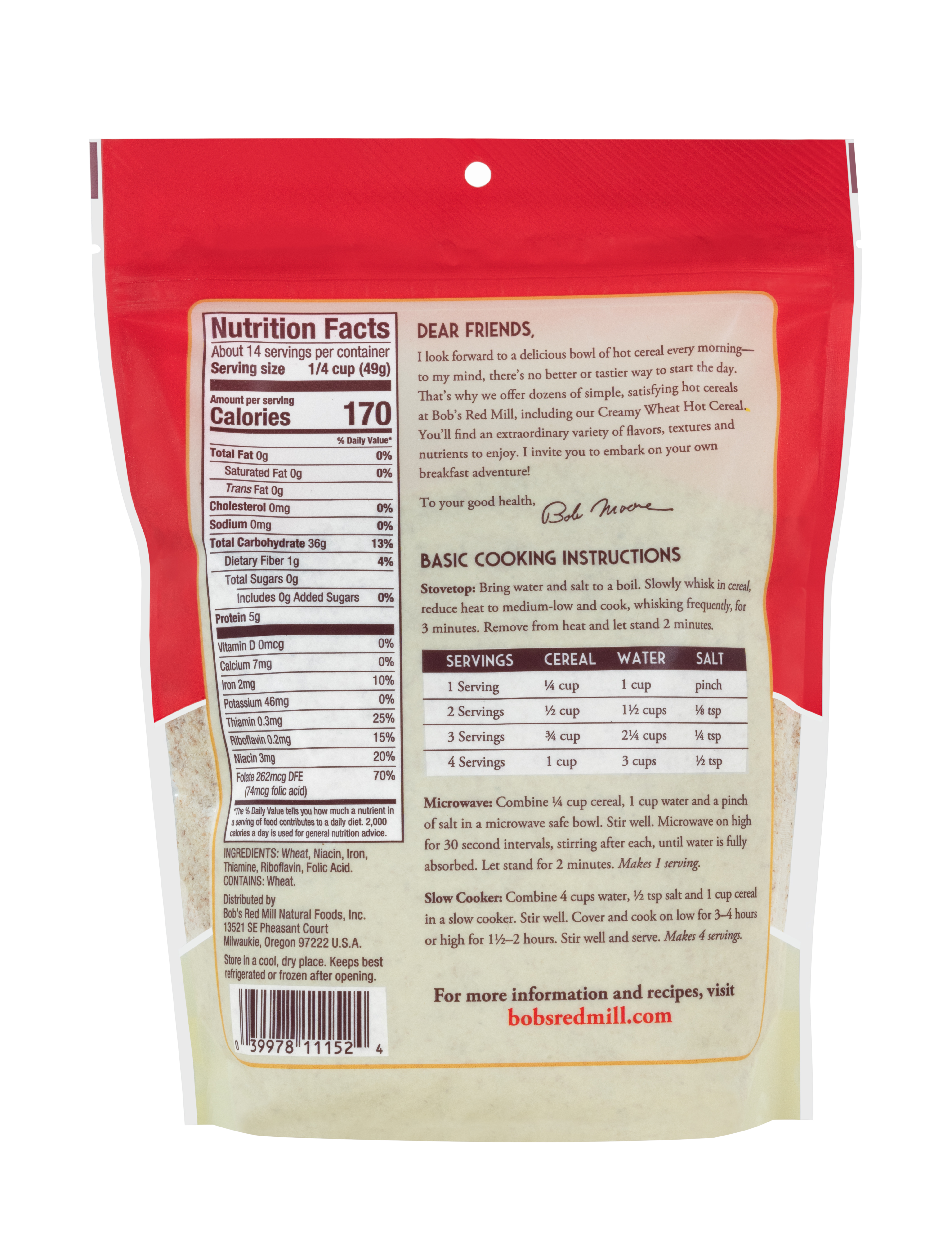 Creamy Wheat Hot Cereal - Front