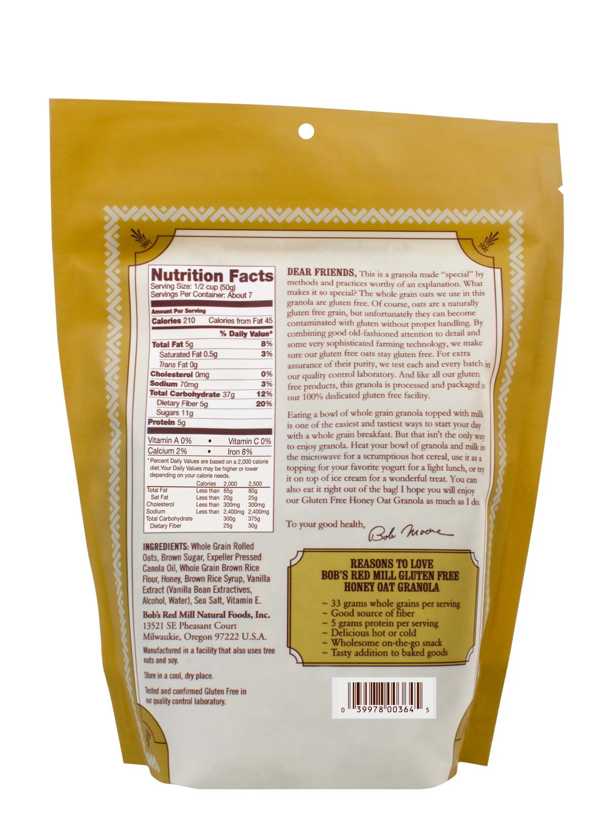 GF Oatmeal cups - blueberry hazelnut - nutritional label