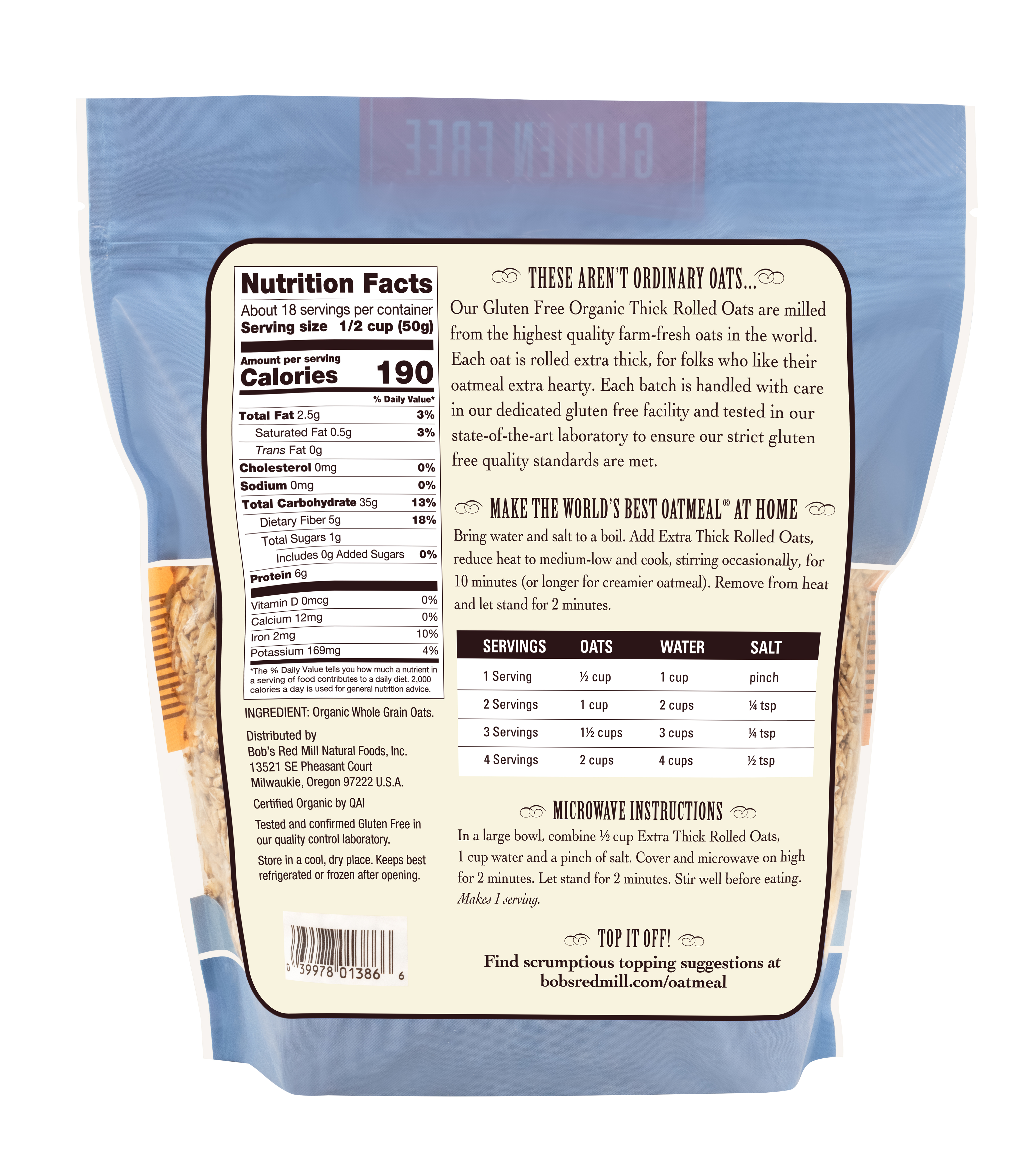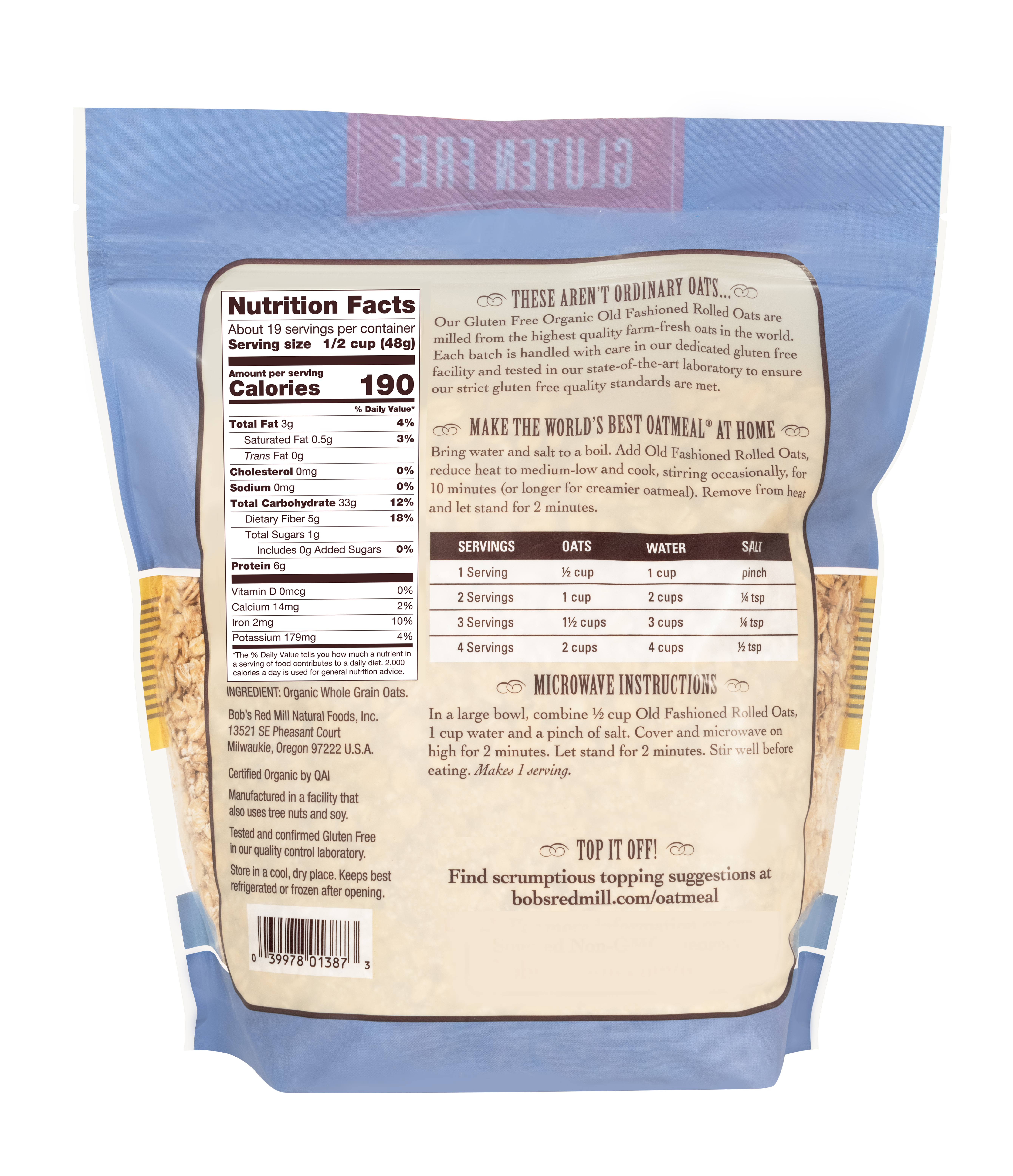 Gluten Free Organic Regular Rolled Oats- back