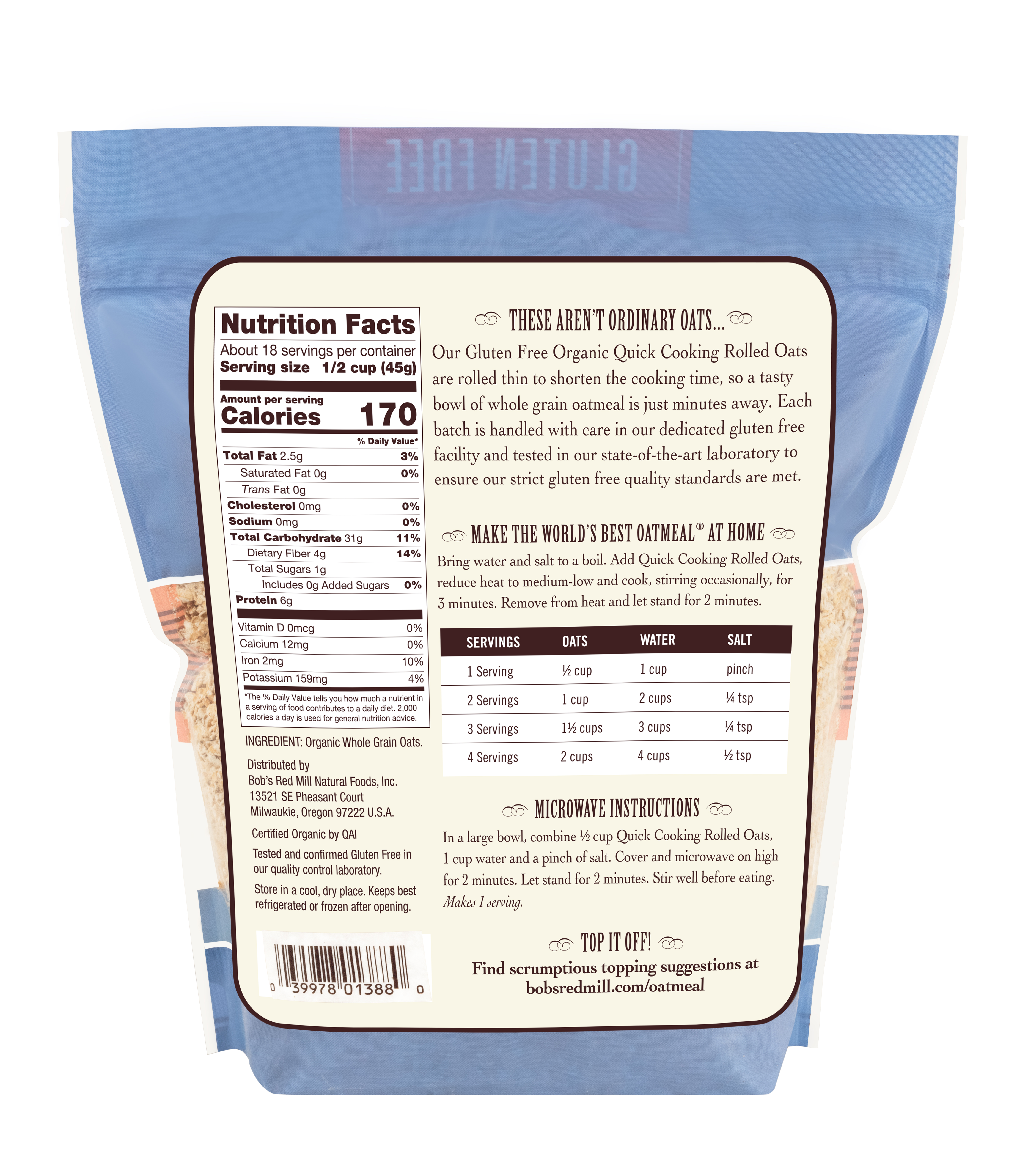 Gluten Free Organic Quick Cooking Rolled Oats- back