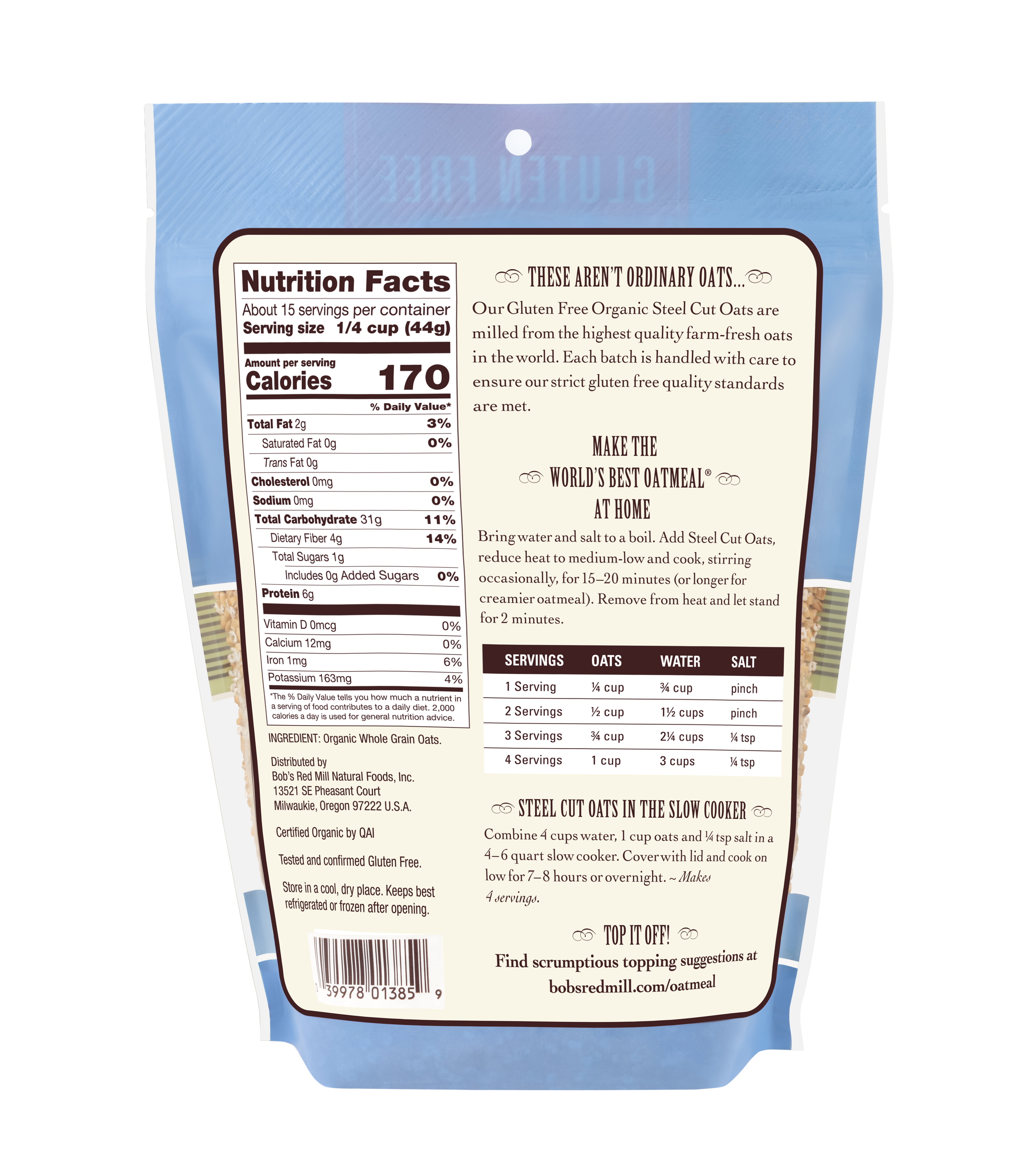 Gluten Free Organic Steel Cut Oats- back