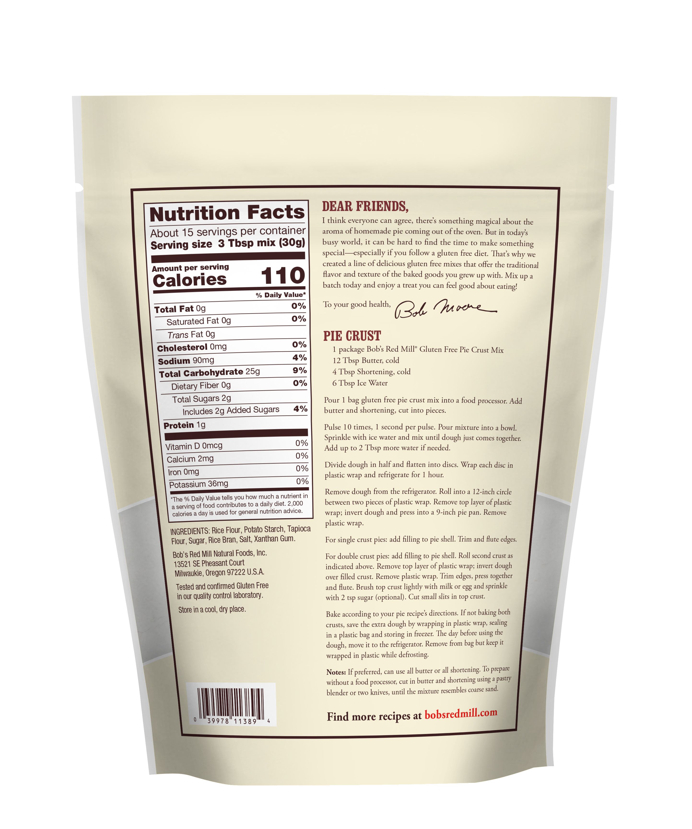 Gluten Free Pie Crust Mix - back