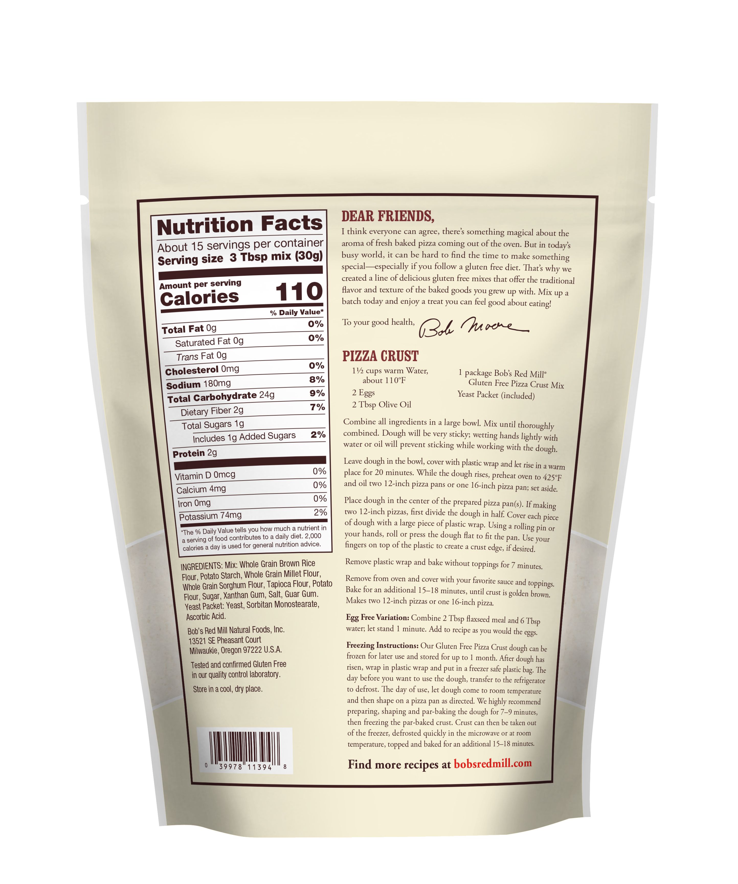 Gluten Free Pizza Crust Mix - back