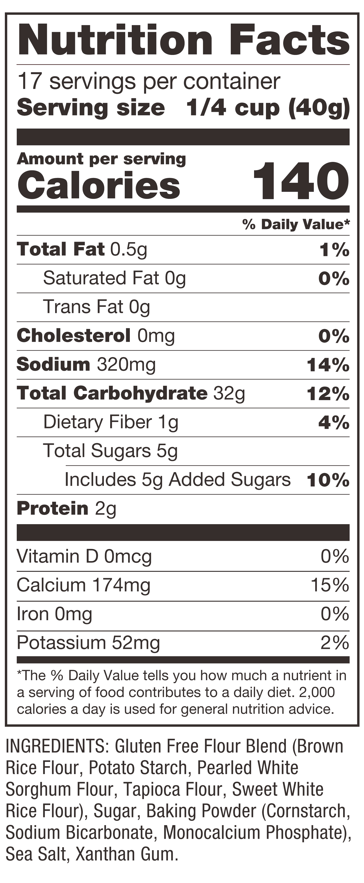 Gluten Free Pancake Mix Nutrition Panel