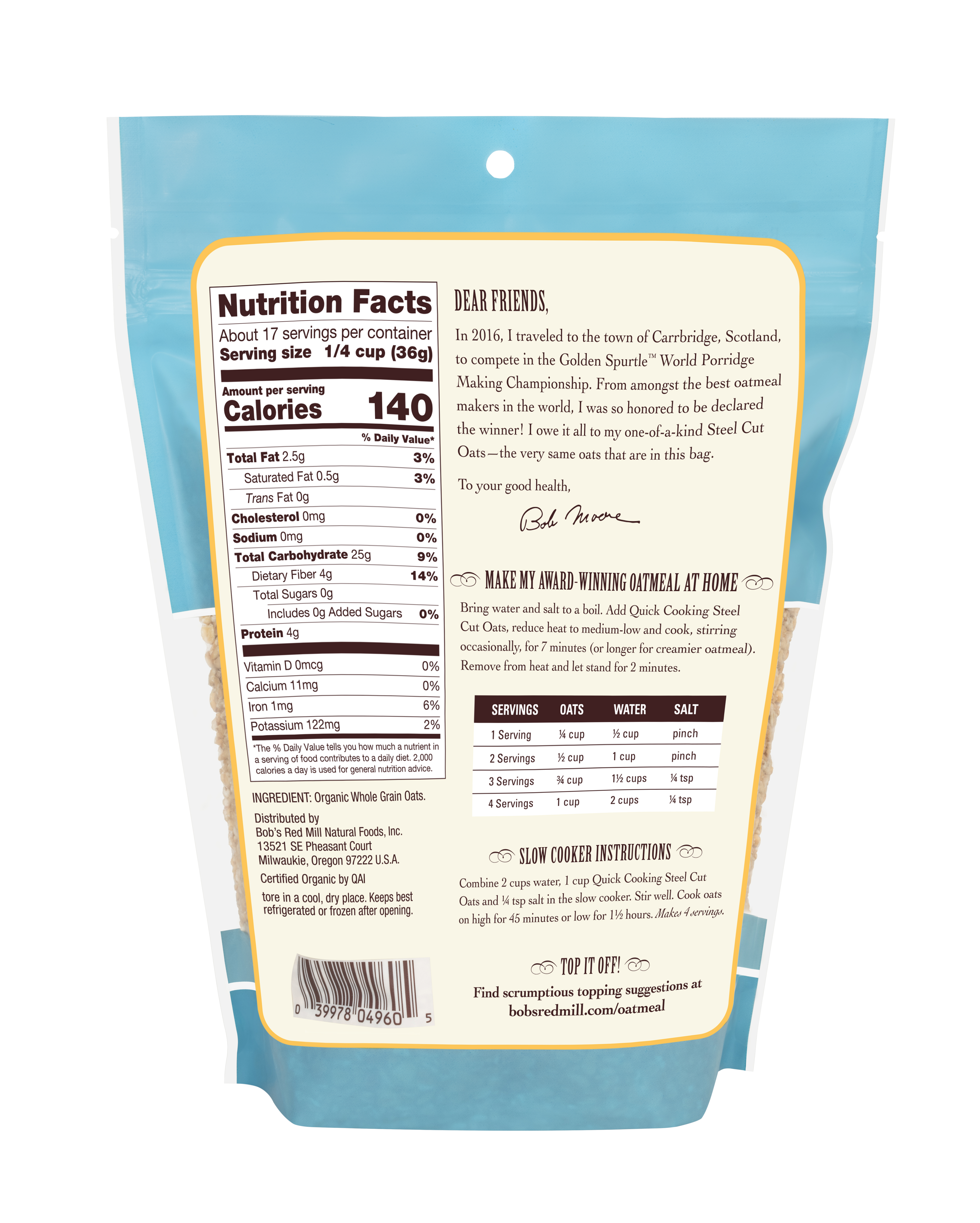 Organic Scottish Oatmeal- back
