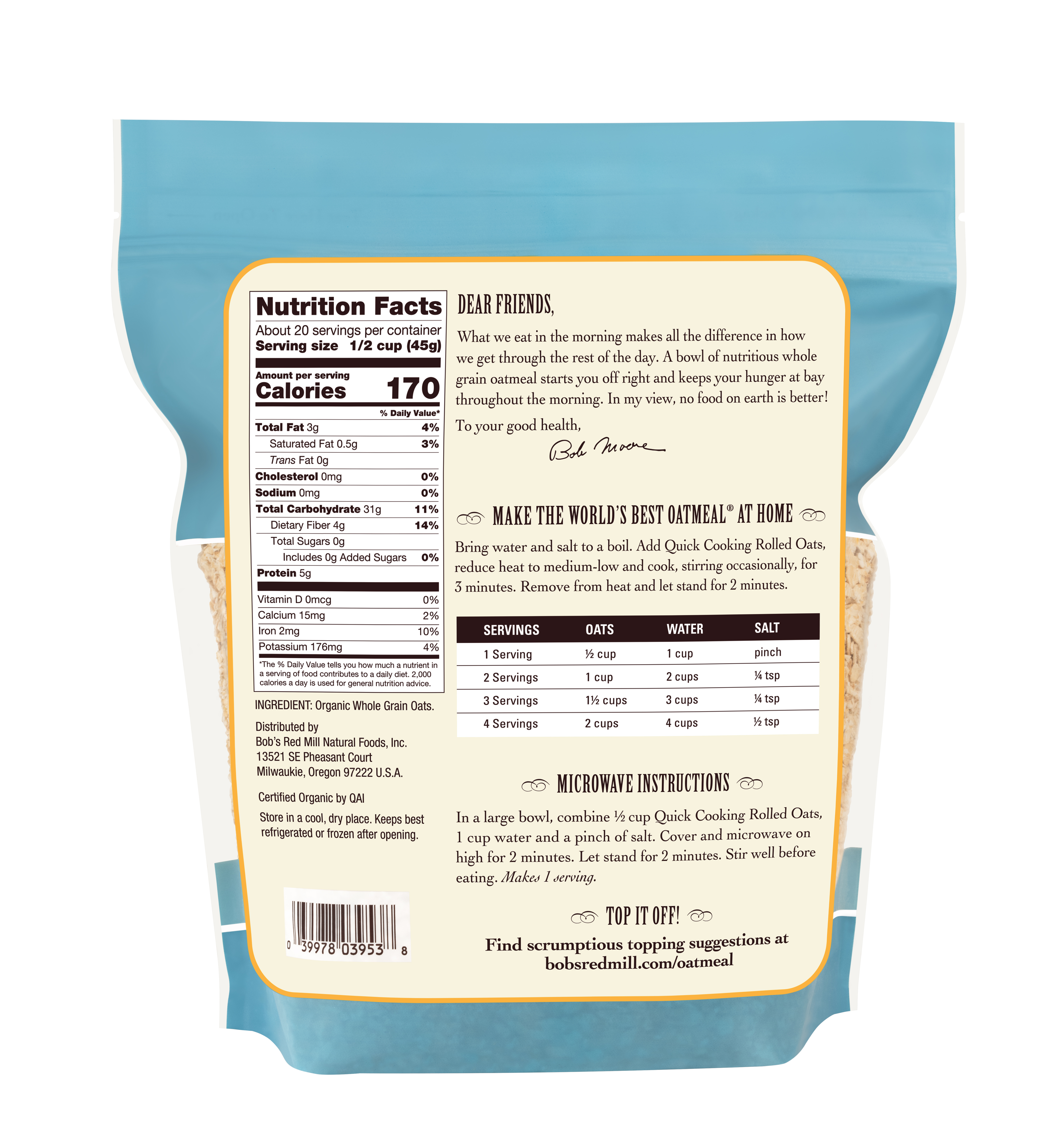 Organic Quick Cooking Rolled Oats - back - 32 oz