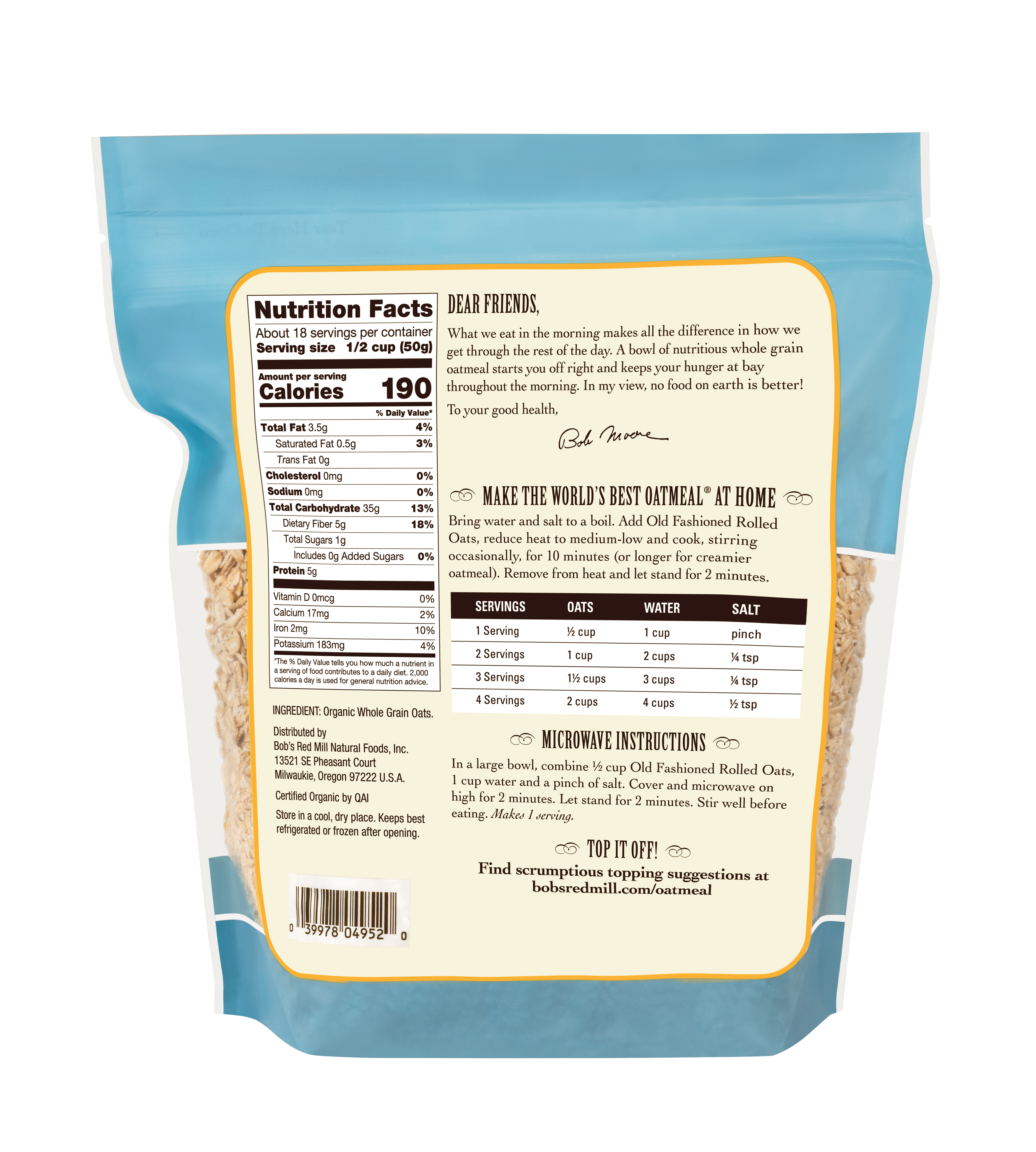 Organic Oats Regular Rolled- back 32 oz