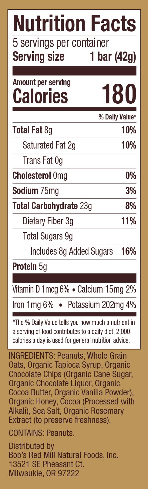 Peanut Butter Chocolate Bar - 5pk Nutrition Panel
