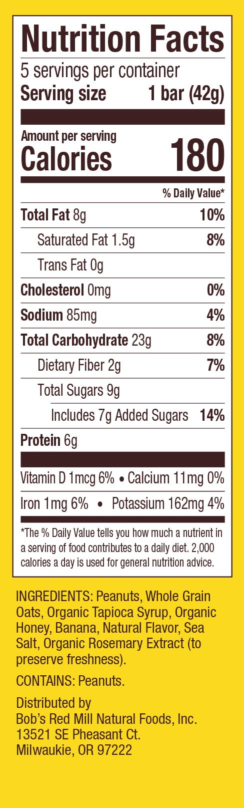 Peanut Butter Banana Bar - 5pk Nutrition Panel