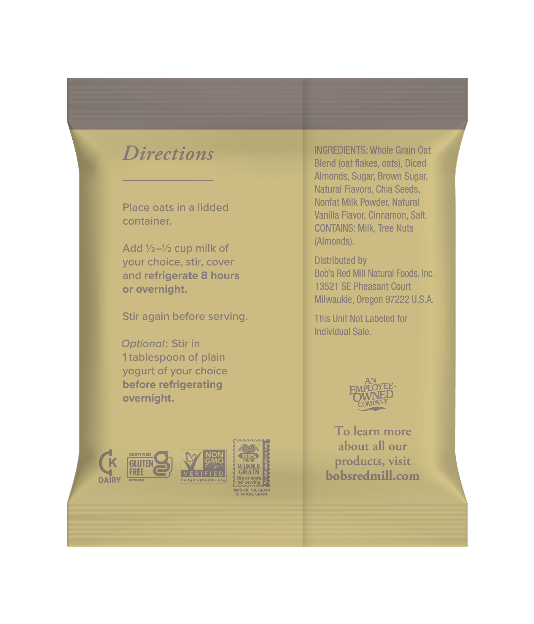 Overnight Protein Oats Vanilla Almond Sachet Back
