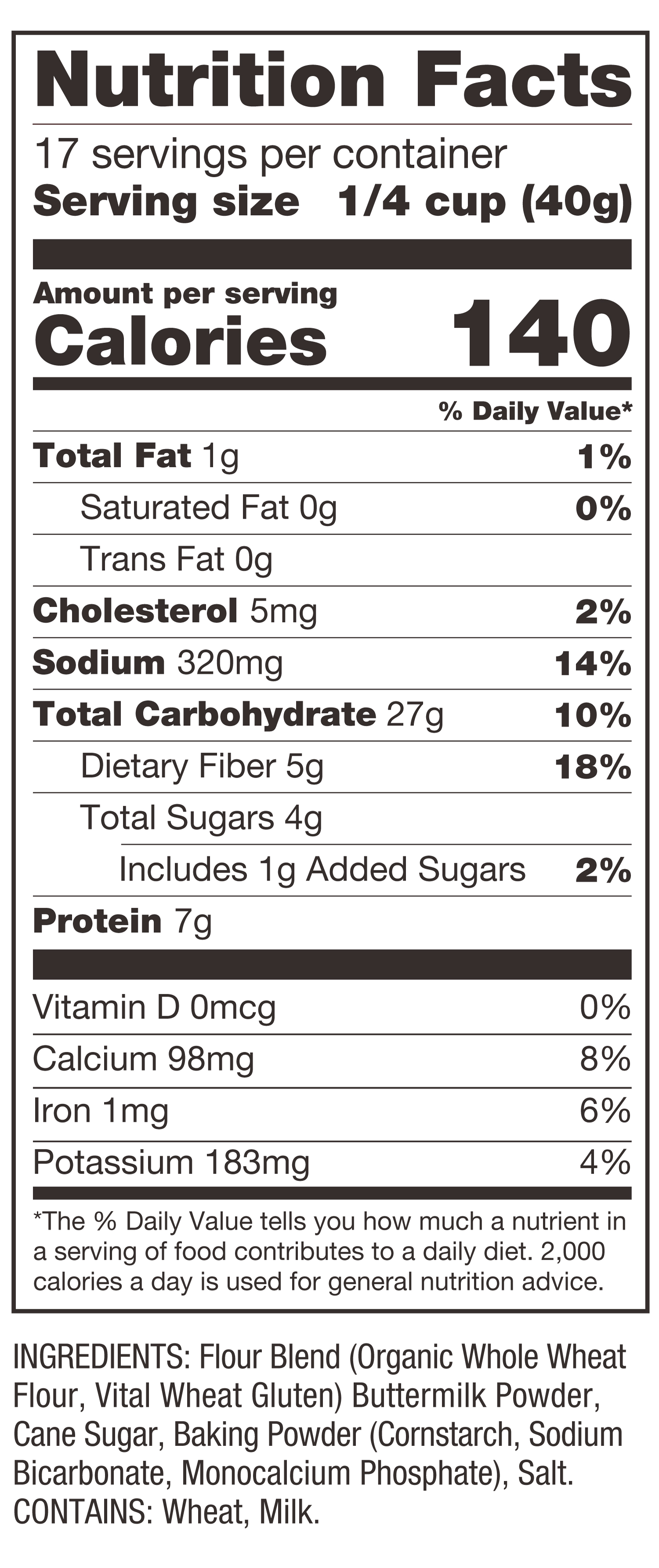 Whole Grain Buttermilk Pancake Nutrition Panel
